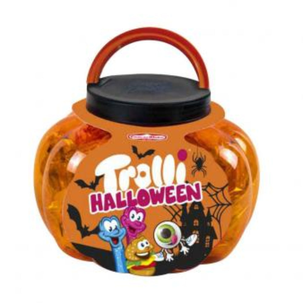 zucca halloween con ciuccetto, trinketto, kiss fragola, sour glowworms, mini burger, pop eye, watermelon