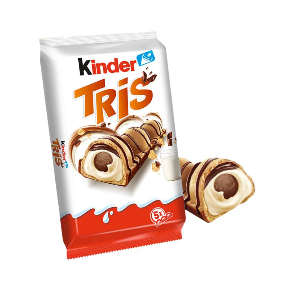 Kinder Tris, confezione da 5 crunchy wafer con crema al latte e topping al cioccolato, 100g