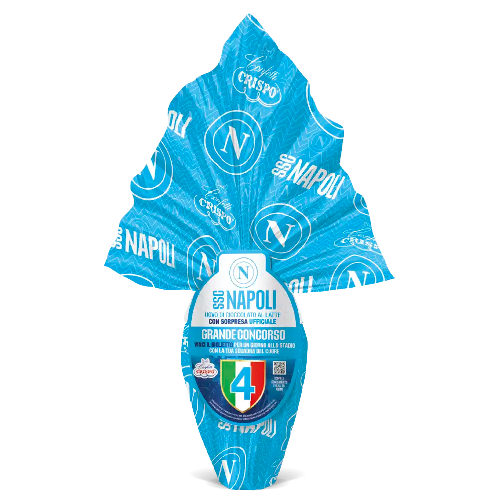 Scopri l’Uovo SSC Napoli Crispo, realizzato con cremoso cioccolato al latte e arricchito da una sorpresa ufficiale dedicata ai veri tifosi della SSC Napoli. Un mix perfetto di dolcezza e passione azzurra, ideale per celebrare l’amore per la propria squadra del cuore.